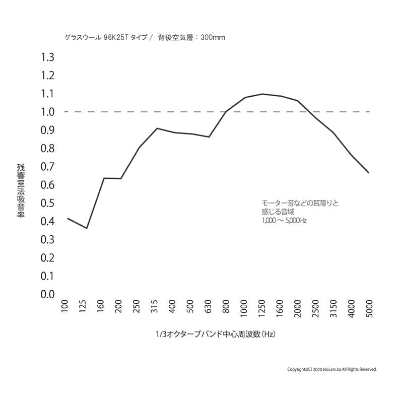 背後空気層300㎜最大値:1.09(1,250Hz)