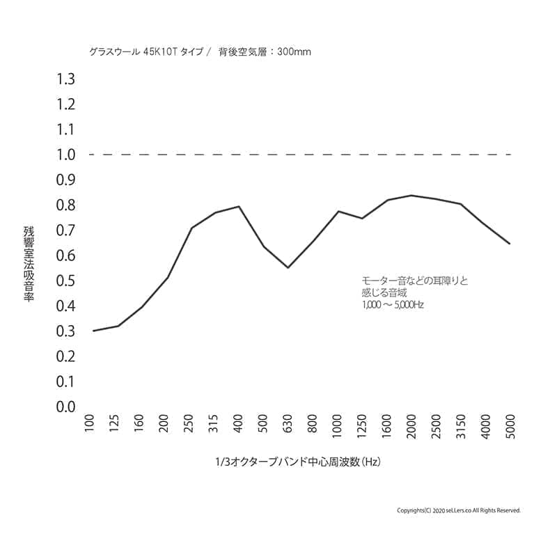 背後空気層300㎜最大値:0.83(2,000Hz)